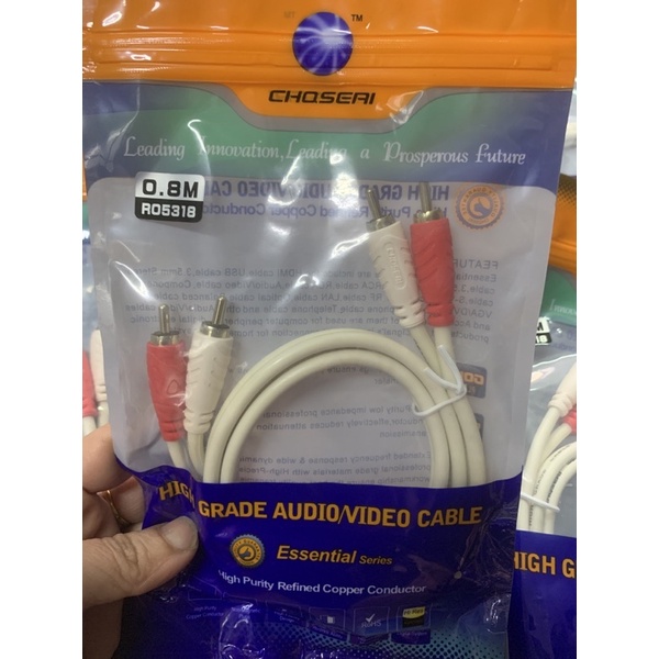Dây nối loa CHOSEAL chính hãng dài 0,8 mét là loại cáp truyền tín hiệu chuyên dụng tốt nhất trên thị trường giúp âm thanh rõ nét, trong trẻo khi thưởng thức.- Dùng để kết nối từ cổng âm thanh RCA Audio của smart tivi, máy tính, đầu Kỹ thuật số, DVD và tất cả thiết bị phát âm thanh bằng cổng RCA audio sang 2 đầu trắng /đỏ RCA, zắc hoa sen của loa, âm ly hoặc 1 số thiết bị chuyên dụng khác.