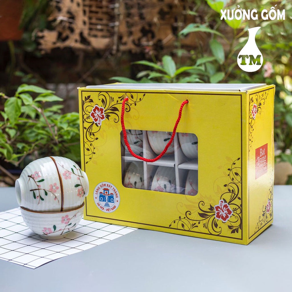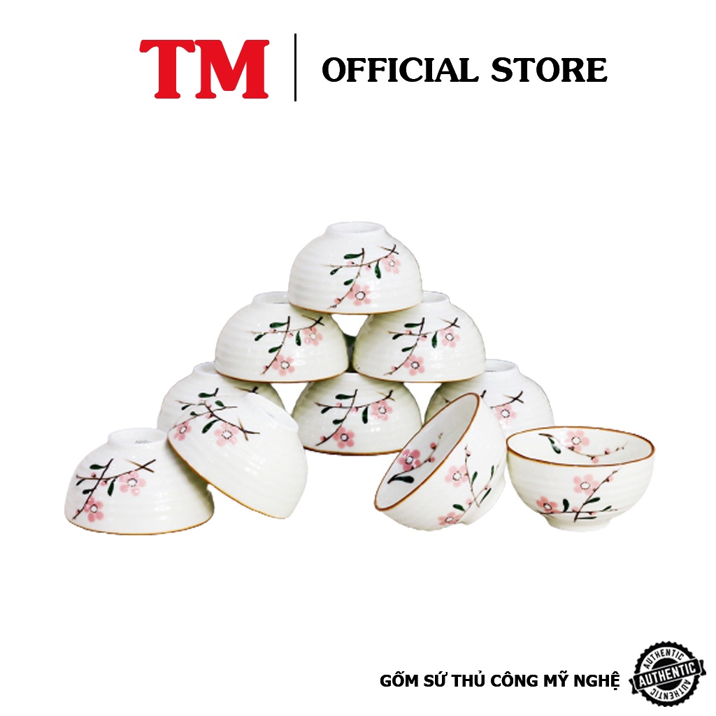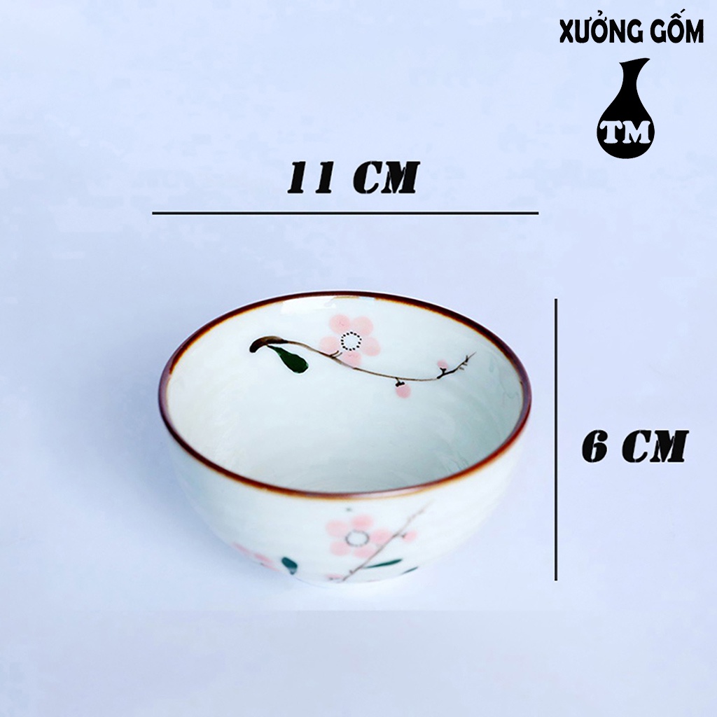 Nhà cửa & Đời sống > Bộ đồ bàn ăn > Tô || 01 Bát Chén Ăn Cơm Họa Tiết Vẽ Tay Hoa Đào Hồng Gốm Sứ Bát Tràng (Mua 5 Tặng 1)Còn hàng