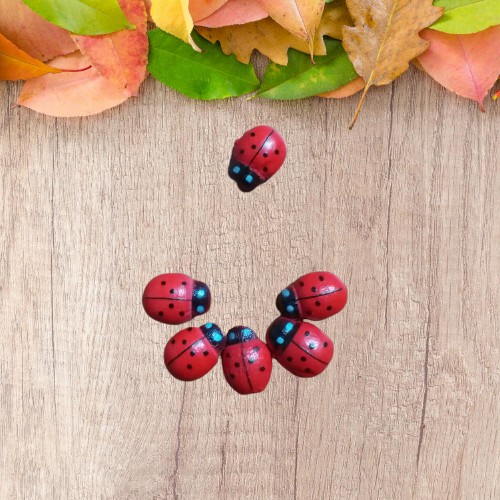 Mẫu hình bọ rùa, bọ cánh cam có kèm miếng dán phía sau để đính lên lá cây hoặc tiểu cảnh, nơi cần trang tríSố lượng: bộ 01 con bọ