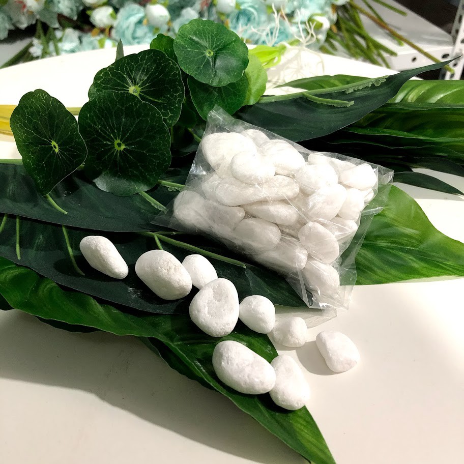 01 Gói Sỏi trắng trang trí lọ hoa thủy tinh hoặc phủ trên bề mặt các chậu sen đá hoặc cây cảnh