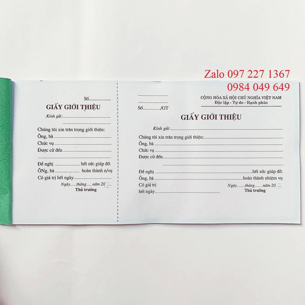 Giới thiệu 01 quyển giấy giới thiệu có rãnh xé