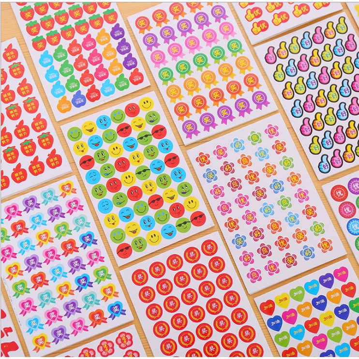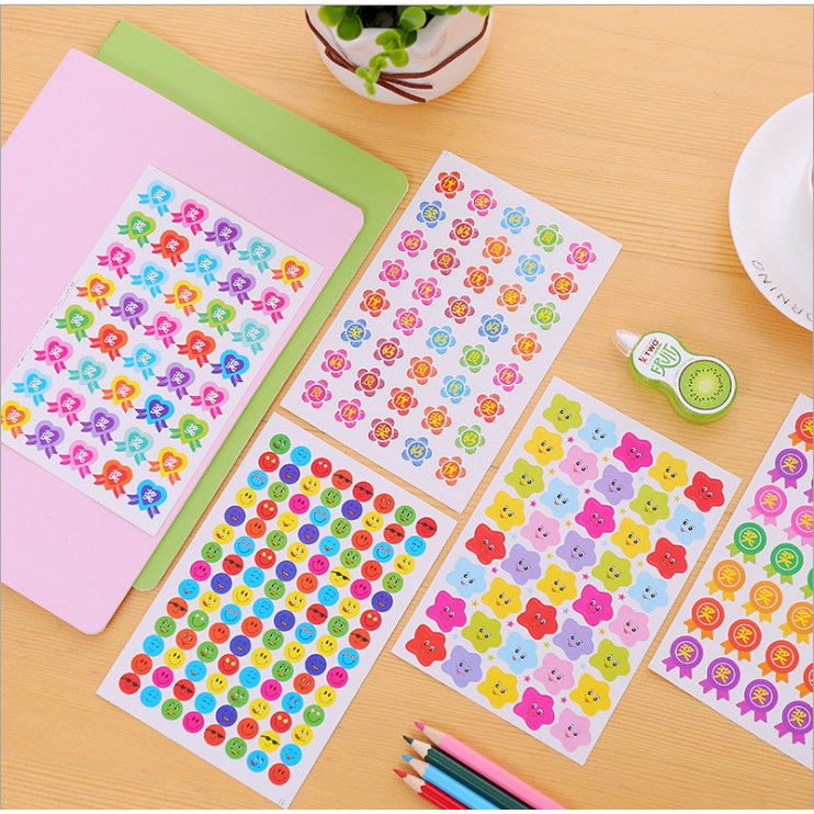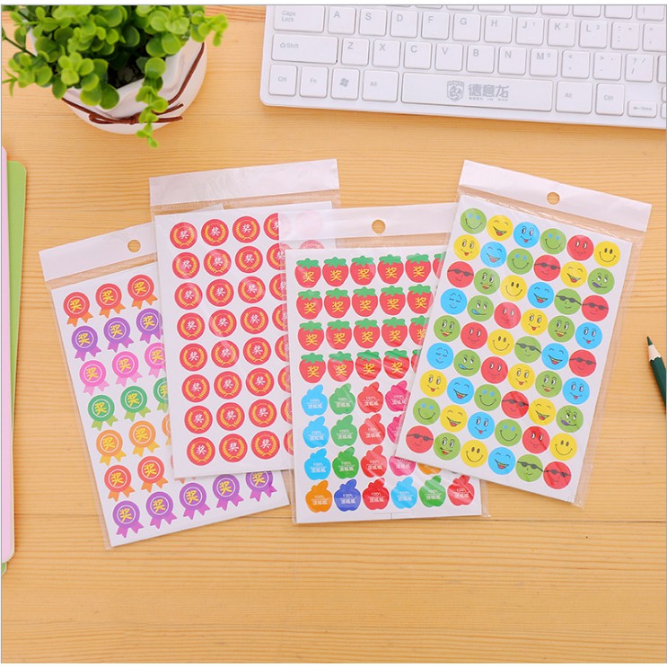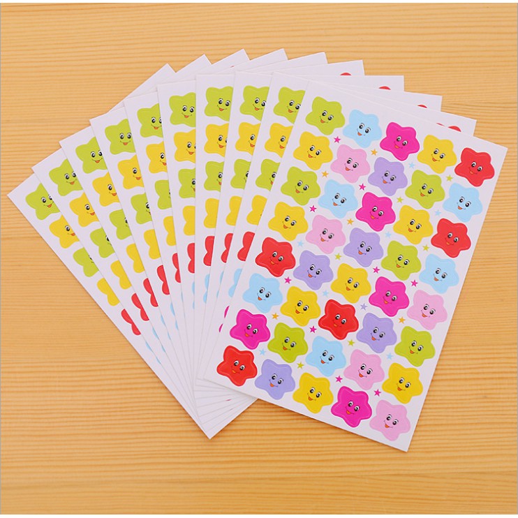 01 Tấm Sticker trang trí nhiều mẫu đẹp mắtSticker thiết kế nhiều hình dáng đẹp mắt: Ngôi sao, trái tim, huy hiêu,táo đỏ, mặt cười emoji…