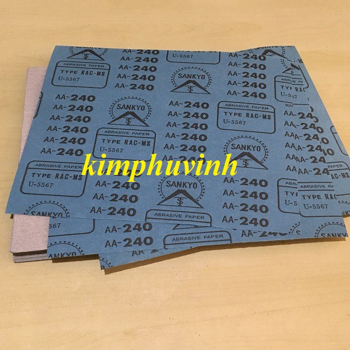 ĐẶC ĐIỂM- Giấy nhám nhật xanh SANKYO hay còn gọi là giấy ráp của hãng SANKYO được bán theo tờ và theo kích thước 230mm x 280mm.