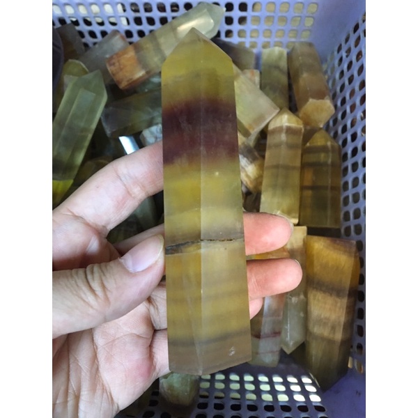 Nhà cửa & Đời sống > Trang trí nhà cửa > Khác || 01 trụ đá rainbow fluorite màu vàng nhiều lớp.Còn hàng