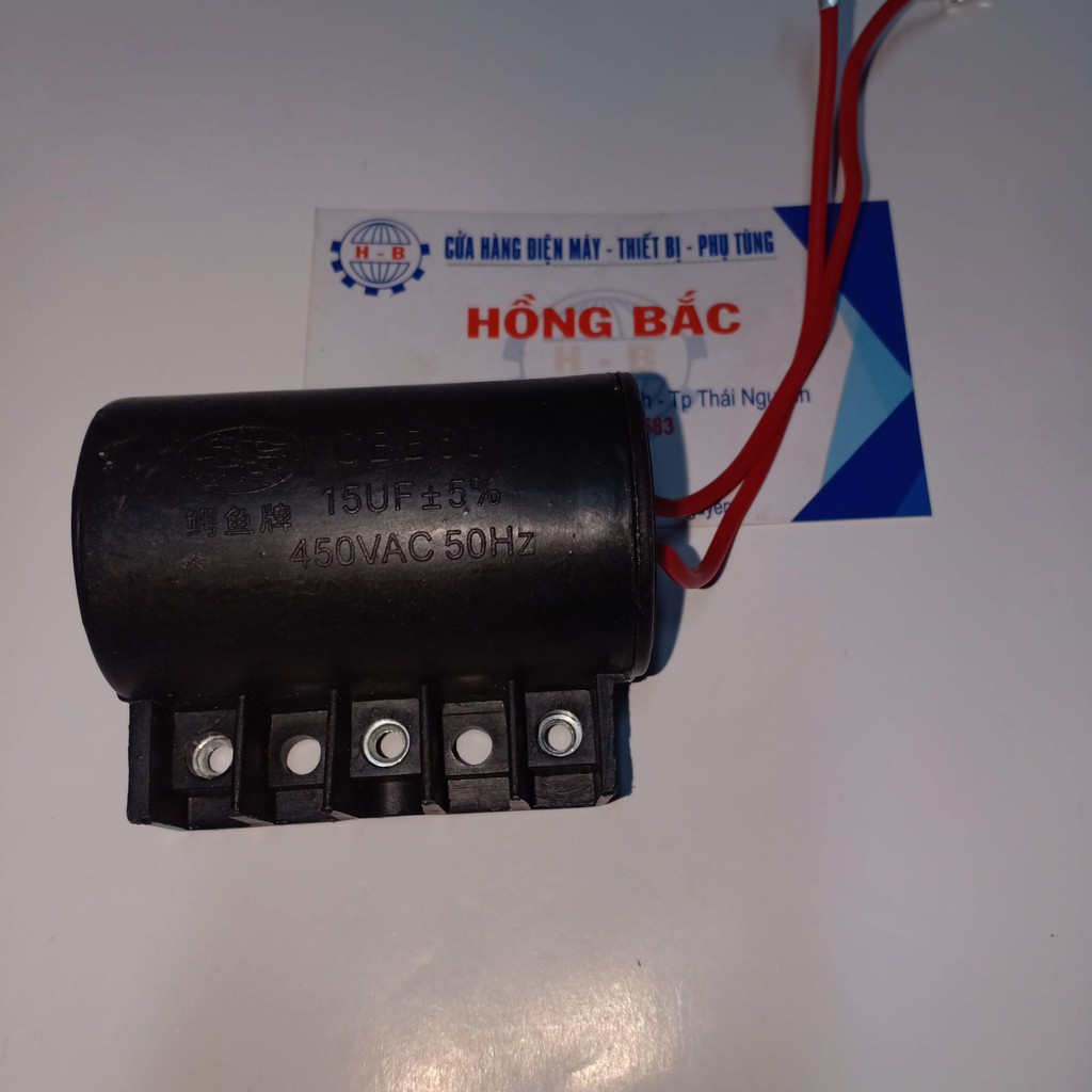 01 Tụ điện 15MF Hàn Quốc ghi loại tốt dùng cho bơm nước và thiết bị điện khácĐiện Máy Hồng Bắc là nhà phân phối phụ tùng Điện Cơ uy tín, cam kết cung cấp các phụ tùng chất lượng tốt, với giá thành hợp lý.