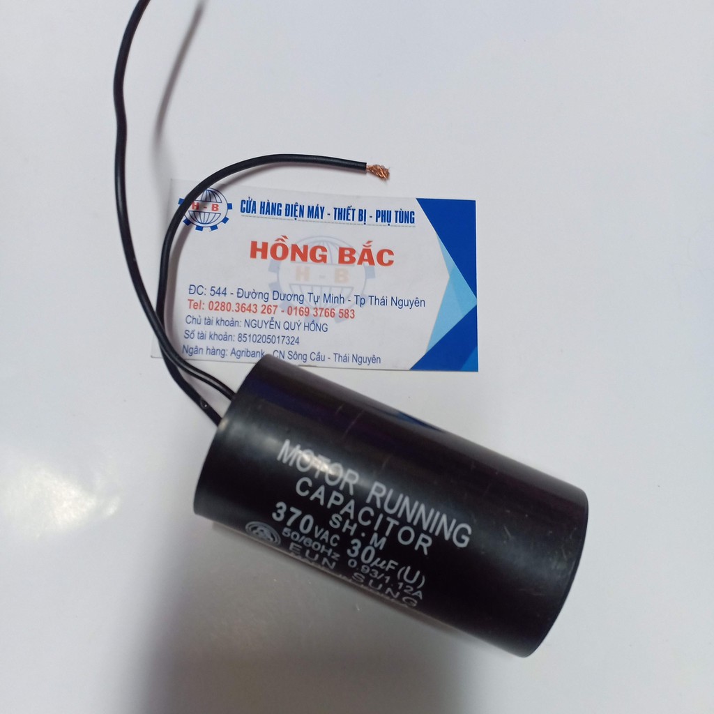 01 Tụ điện 30MF đen loại tốt dùng cho bơm nước và thiết bị điện khácĐiện Máy Hồng Bắc là nhà phân phối phụ tùng Điện Cơ uy tín, cam kết cung cấp các phụ tùng chất lượng tốt, với giá thành hợp lý.