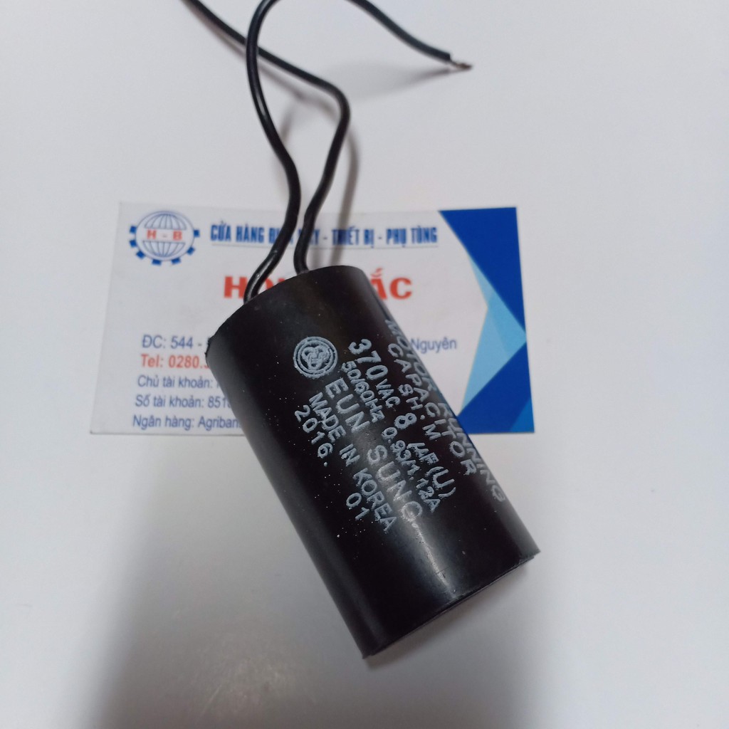 01 Tụ điện 8MF 370VAC đen loại tốt dùng cho bơm nước và thiết bị điện khác