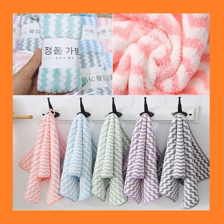 Giới thiệu [ 02 cái ] khăn mặt Hàn Quốc 50cm x 25cm vân kẻ sọc - khăn bông lông cừu siêu mềm mịn