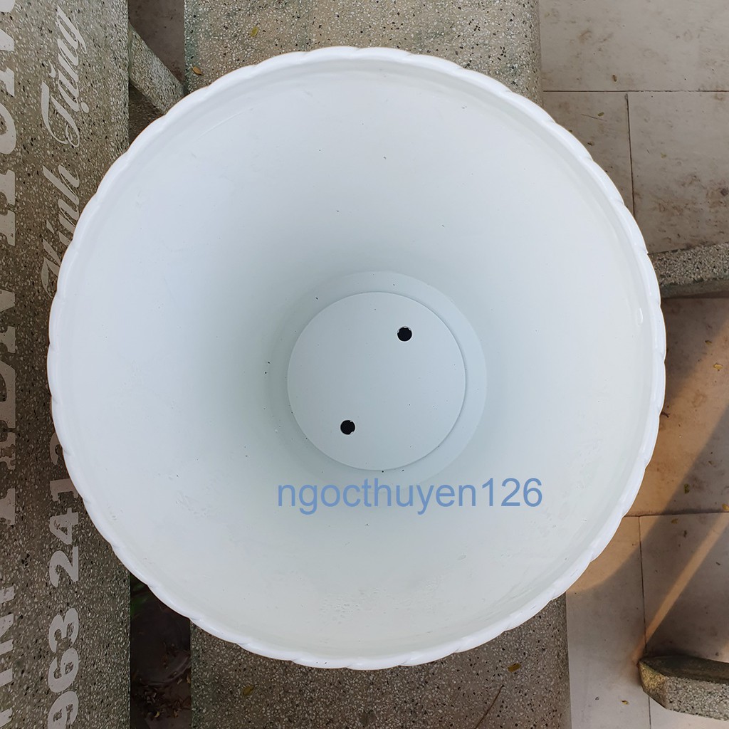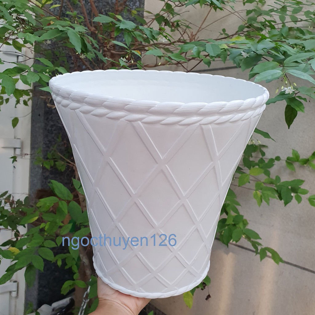Bộ 02 chậu caro trồng hoa kiểng màu trắng nhựa dày đẹp size trung 27x27x18cm
