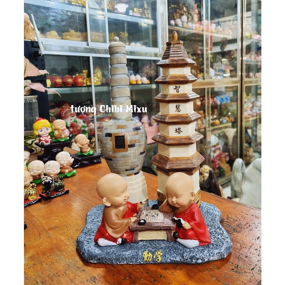 Bộ 02 chú tiểu đánh cờ bên Tháp Trí TuệBộ sản phẩm gồm: