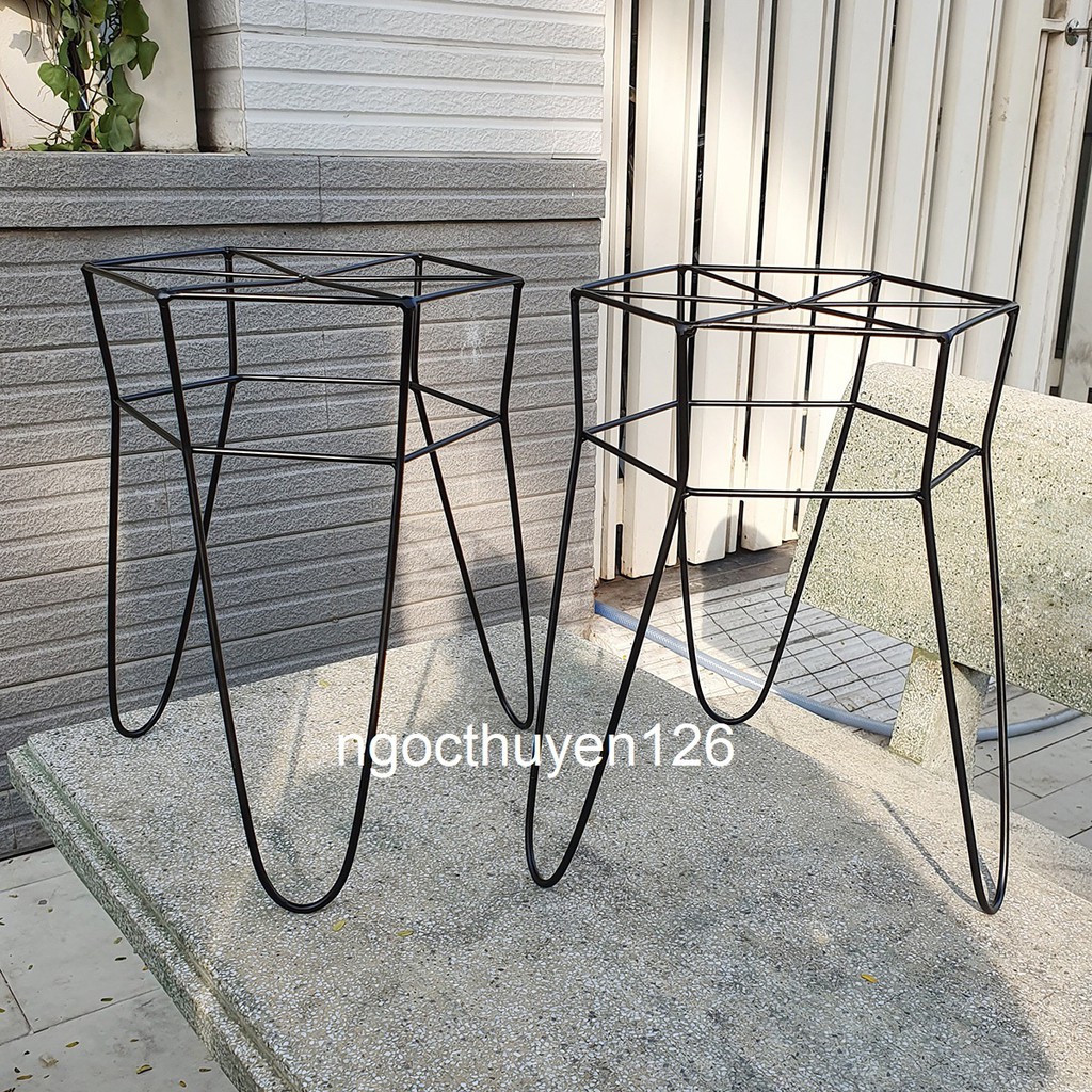 Bộ 02 kệ cao lục giác đặt chậu hoa bằng sắt sơn tĩnh điện màu đen size 26x36cm