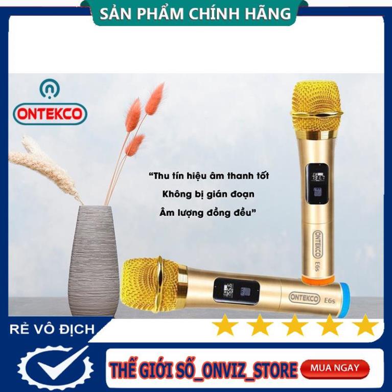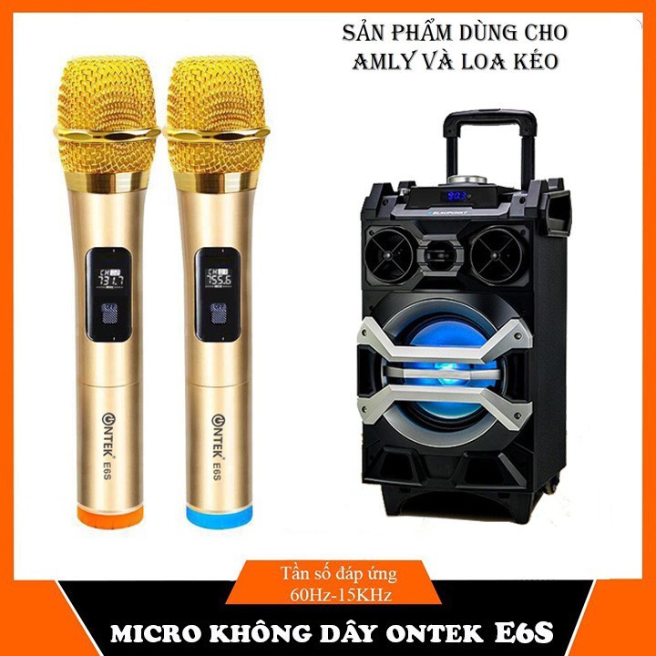 Bộ 02 Micro không dây karaoke ONTEK E6s gold bản cao cấp Chuyên Dành Cho Mọi Loa Kéo, Âm Ly, Tần Số 50, Hát Nhẹ Êm