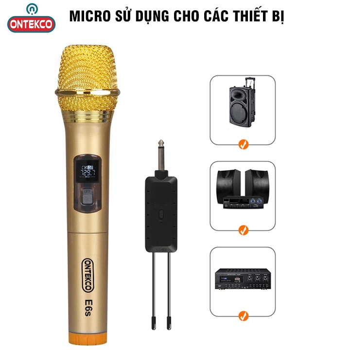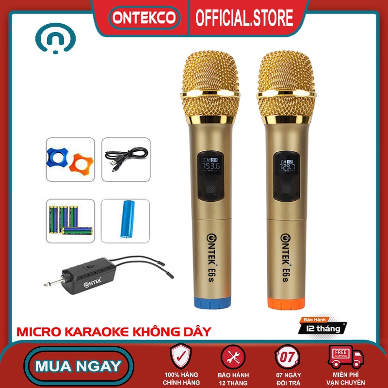 Giới thiệu Bộ 02 Micro không dây karaoke ONTEK E6s gold bản cao cấp Chuyên Dành Cho Mọi Loa Kéo, Âm Ly, Tần Số 50, Hát Nhẹ Êm