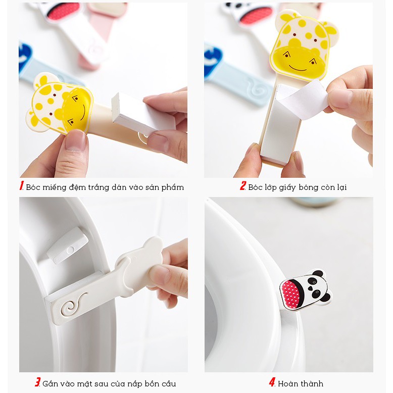 Giới thiệu Bộ 02 Miếng Dán Mở Nâng Đóng Nắp Bồn Cầu Tránh Vi Khuẩn Hoạt Hình Đáng Yêu Cao Cấp
