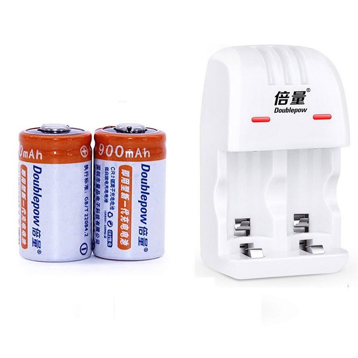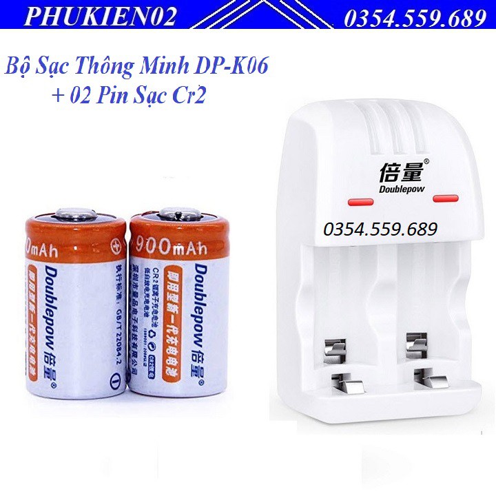 Bộ 02 Pin Sạc Cr2 3V Doublepow Dung Lượng Cao 900mAh Kèm Bộ Sạc Thông Minh DP-K06 Có Đèn LED Sạc Cho Cả Pin CR123A/CR2 A