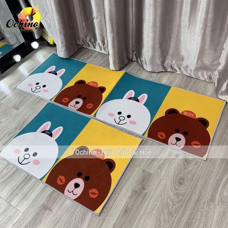 🍓Chất liệu thảm được làm bằng vải nỉ lì in 5D cao cấp, láng mịn và dày dặn, giữa mặt dưới là vân hoa cao su chống trơn trượt.