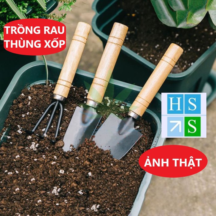 Giới thiệu Bộ 03 Dụng cụ làm vườn mini cán gỗ (Xẻng + Bay + Cào đất) dùng đa năng trồng rau trồng hoa chăm cây cảnh tiện lợi