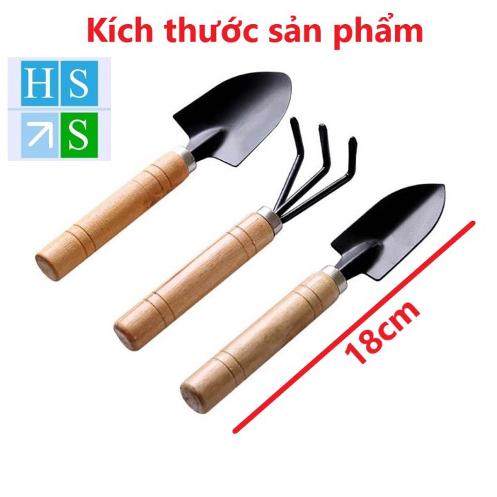 Bộ 03 Dụng cụ làm vườn mini cán gỗ (Xẻng + Bay + Cào đất) dùng đa năng trồng rau trồng hoa chăm cây cảnh tiện lợi