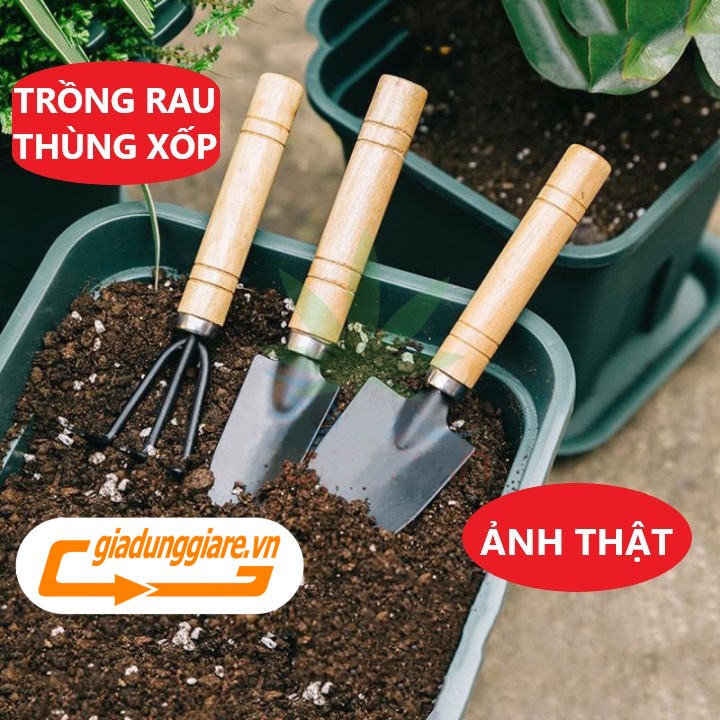 Giới thiệu Bộ 03 Dụng cụ làm vườn mini cán gỗ (Xẻng + Bay + Cào đất) dùng đa năng trồng rau trồng hoa chăm cây cảnh tiện lợi
