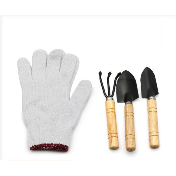Bộ 03 dụng cụ mini - 01 găng tay vải làm vườn tiện ích GD 9002