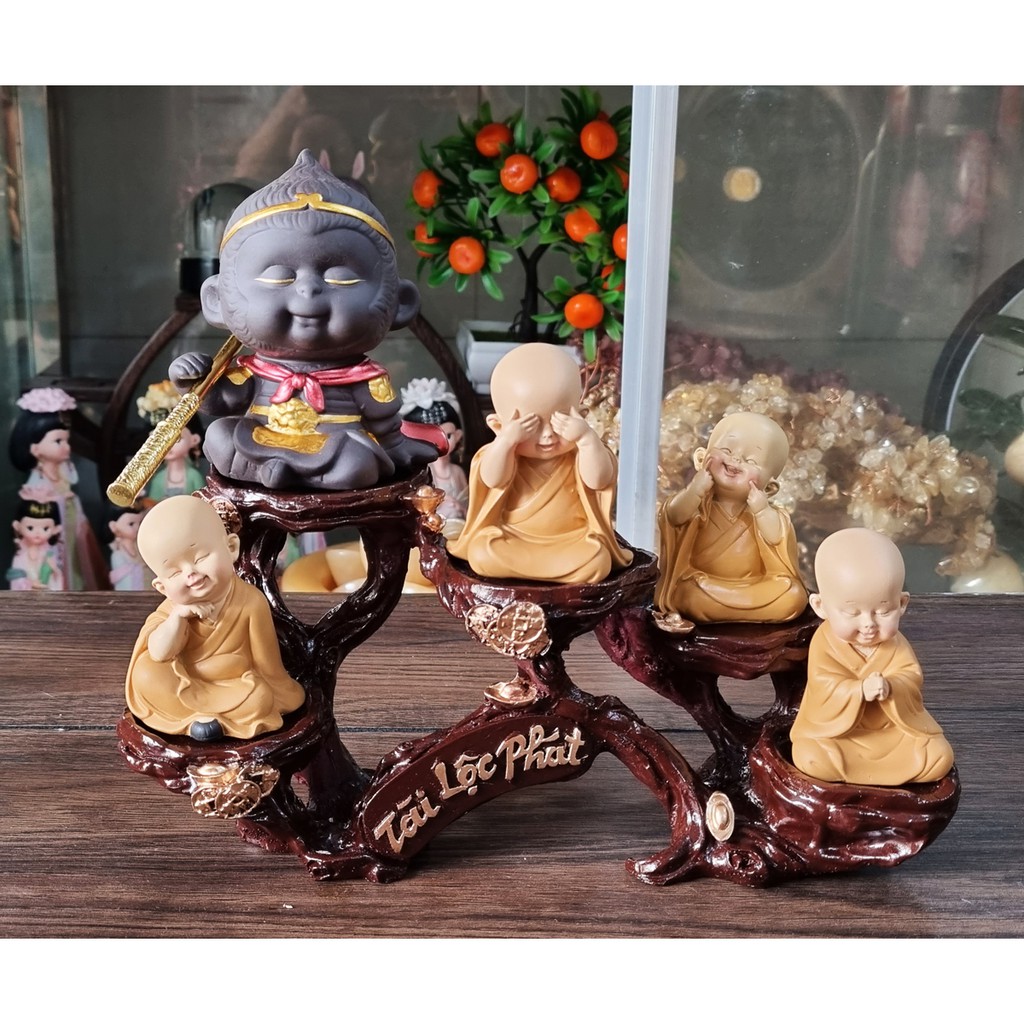 Nhà cửa & Đời sống > Nội thất > Khác || Bộ 04 chú tiểu áo nâu kèm Mỹ Hầu Vương baby và chân đế Tài Lộc PhátCòn hàng