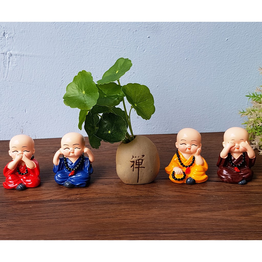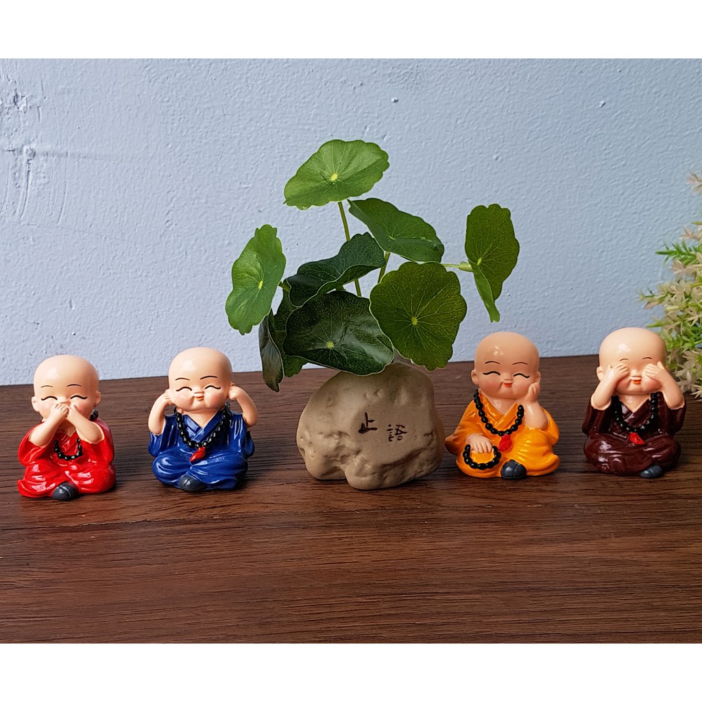 Nhà cửa & Đời sống > Làm vườn > Chậu cây || Bộ 04 chú tiểu Tứ Không đeo chuỗi kèm chậu lá sen 02 mẫuCòn hàng