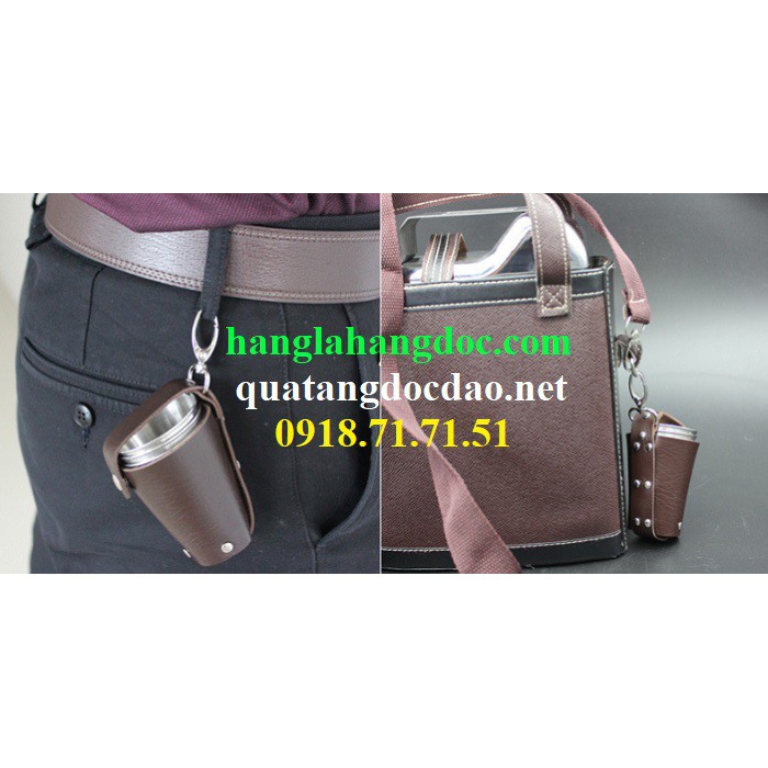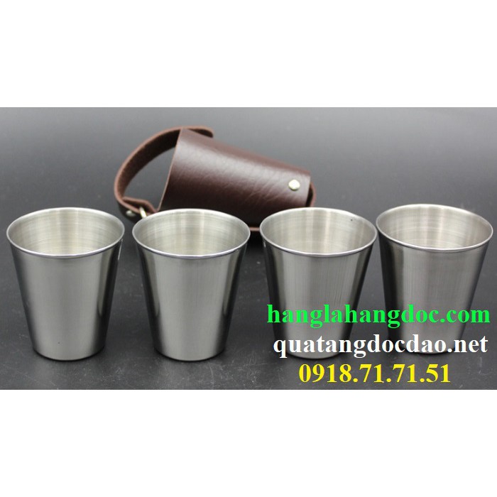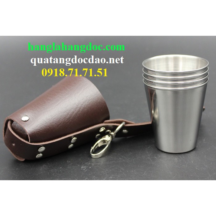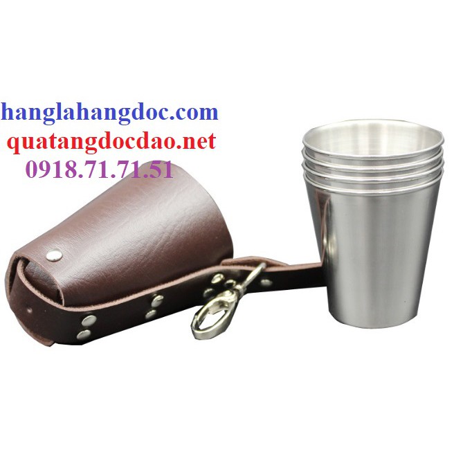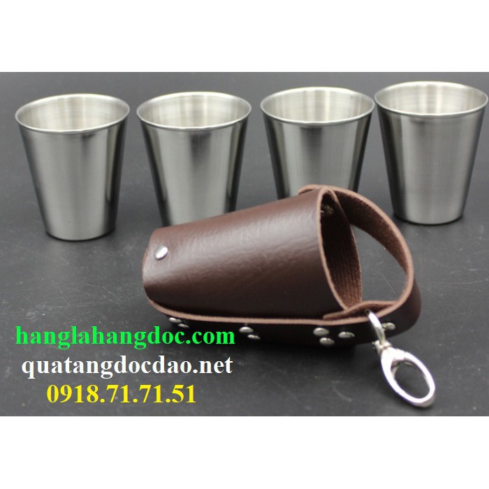 Bộ 04 ly rượu inox 70ml, kèm bao da treo sang trọngCombo tiện dụng & cá tính dành riêng cho các quý ông