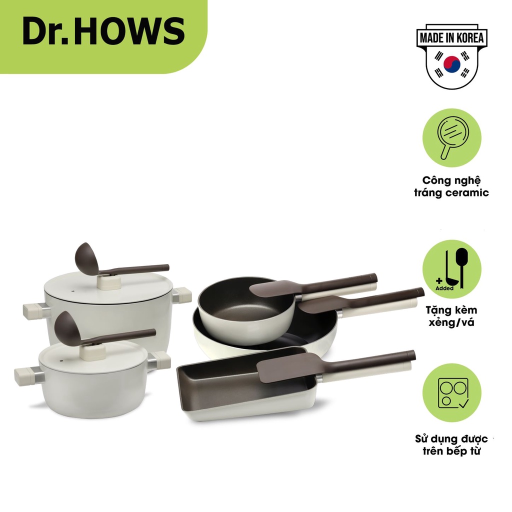 Dr.HOWS - nồi chảo cao cấp Made in Korea với công nghệ tráng ceramic mới nhất, đảm bảo sức khoẻ và trải nghiệm nấu nướng trọn vẹn. 100% bản quyền thiết kế và sản xuất 2021 từ Dr.Hows Korea.
