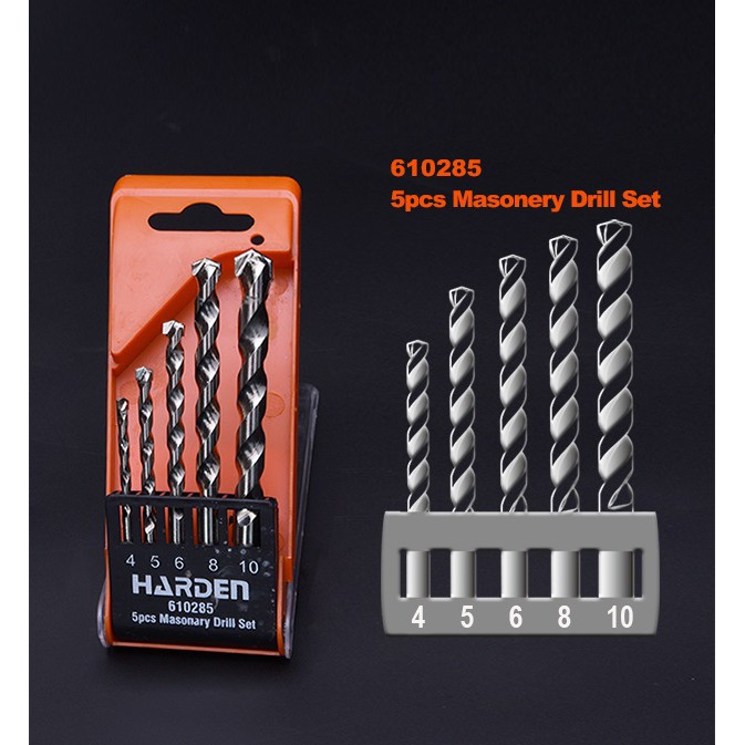 Giới thiệu Bộ 05 Mũi Khoan Bê Tông HARDEN 610285 Hàng Chính Hãng. Được Làm Từ Chất Liệu Thép Carbon, Lưỡi GắnHợp Kin YG8 Chống Mài