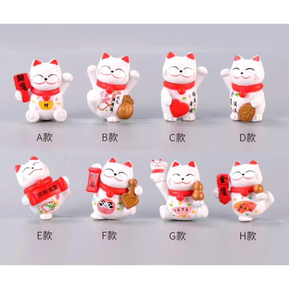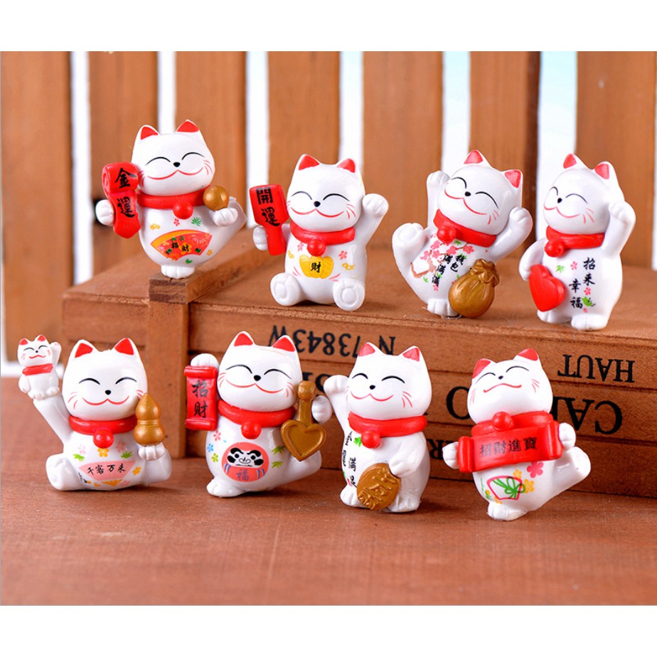Bộ 08 mô hình mèo thần tài Maneki Neko cực xinh cho các bạn trang trí tiểu cảnh, xe hơi hay đơn giản là góc làm việc
