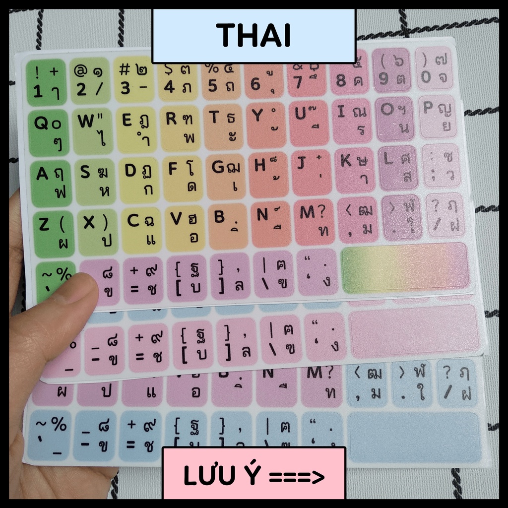 1.1cm THAI Miếng dán bàn phím đa ngôn ngữ tiếng Thái Lan keyboard máy tính laptop nhiều màu cầu vồng