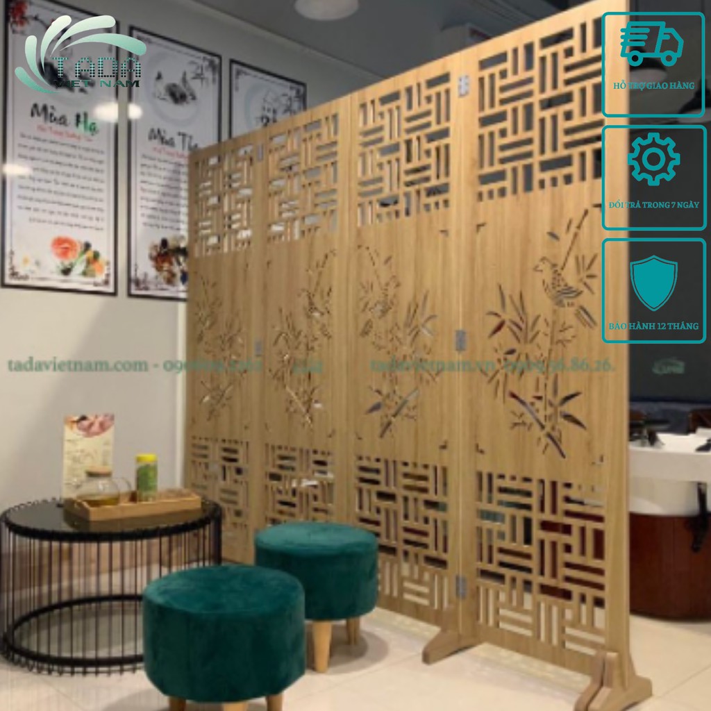 Nhà cửa & Đời sống > Trang trí nhà cửa > Rèm cửa, màn che || (1-2 tấm) Vách ngăn phòng bình phong hoạ tiết cây trúc CNC bằng chất liệu gỗ MDF thương hiệu TADACòn hàng