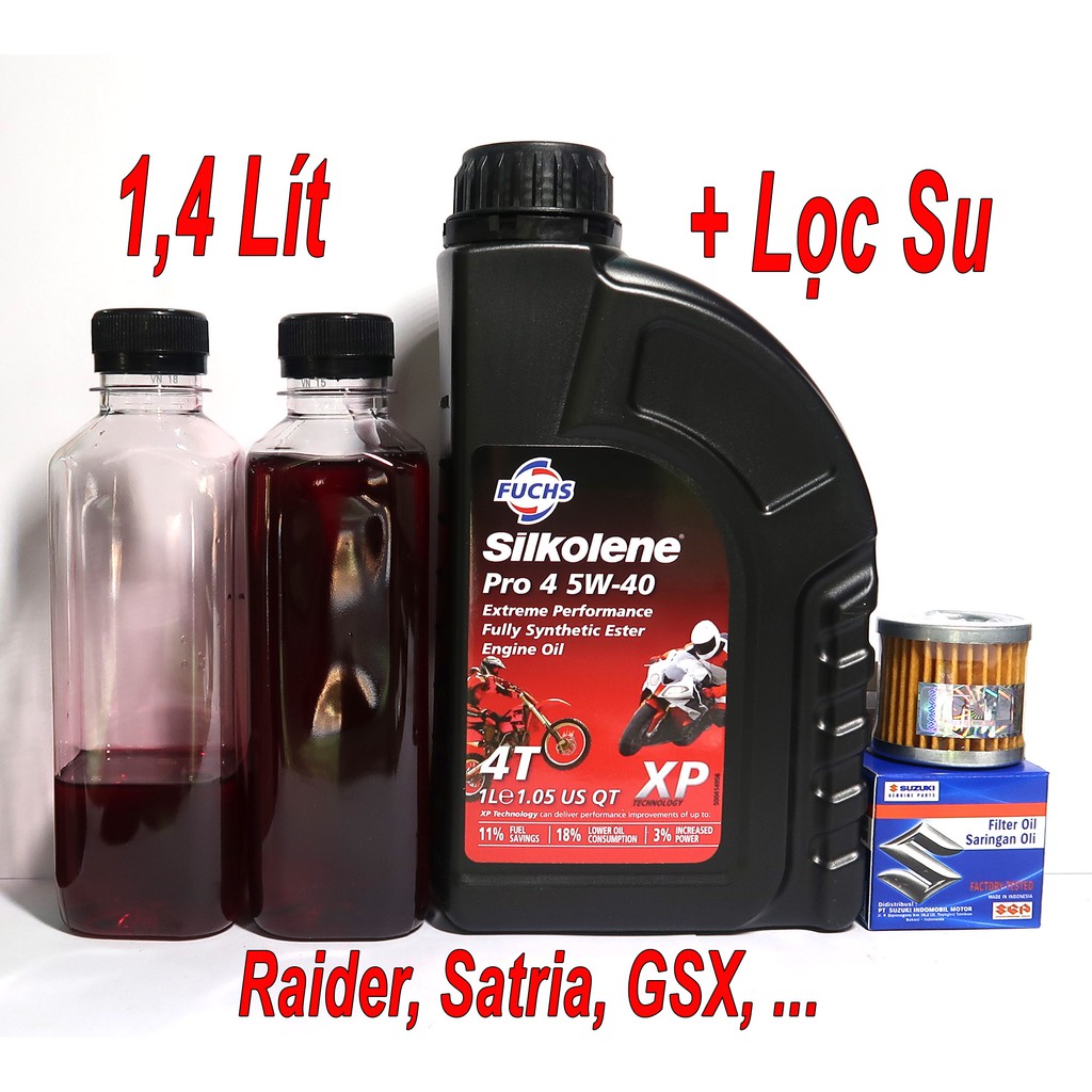 1,4 Lít Nhớt FUCHS SILKOLENSE 5W40 + Lọc Suzuki Raider, Satria, GSX, ...