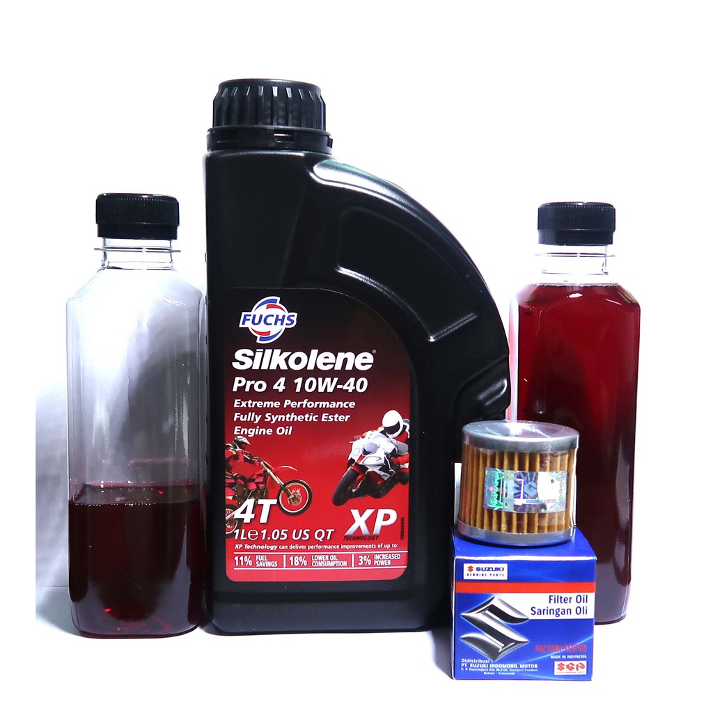 1,4 Lít Nhớt FUCHS SILKOLENSE 10W40 + Lọc Suzuki Raider, Satria, GSX, ...