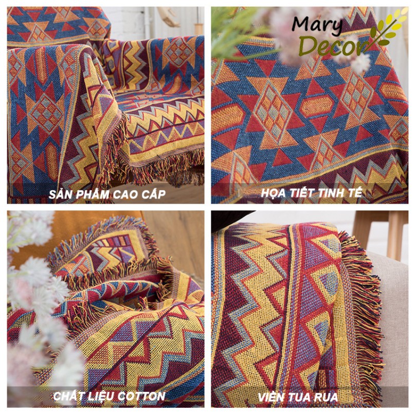 (1.8*2.3m&2.3*2.75m) Phủ sofa họa tiết độc đáo ấn tượng Mary Decor - Phong cách Bohemian bốc lửa PS10