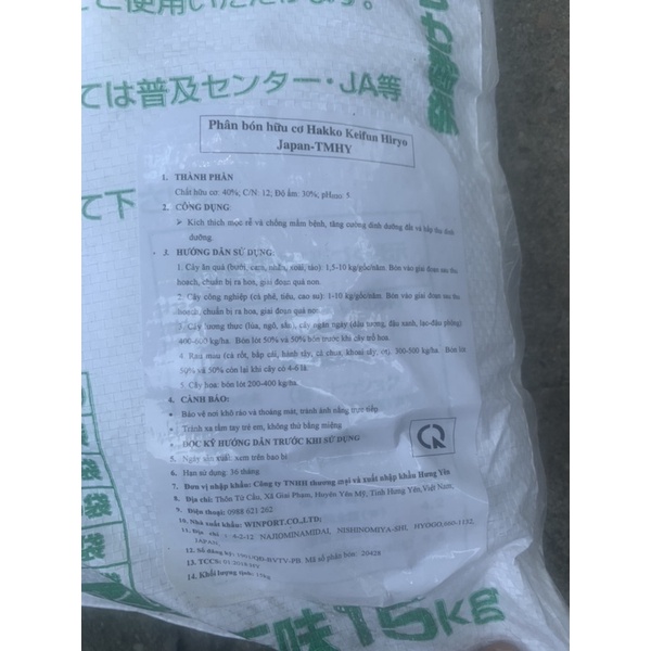 1 bao (15kg) phân vi sinh khẩu Nhật Bản an toàn cho người sử dụngChuyên dùng cho cây ăn quả, cây cảnh, hoa hồng, cây bonsai