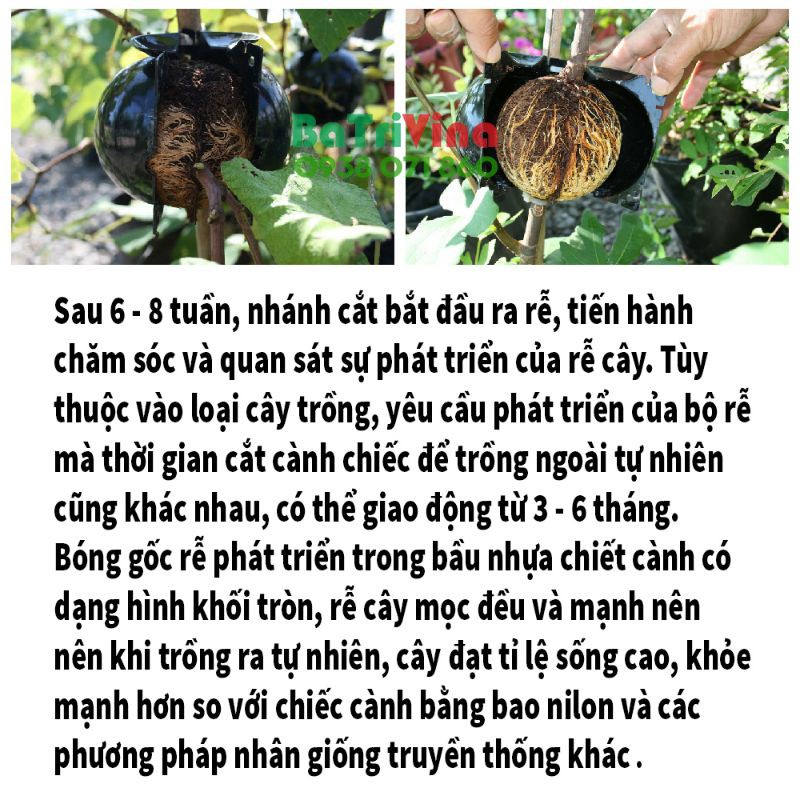 Với thiết kế cách mạng cải tiến trong việc đóng bó bầu chiết, những điểm hạn chế trước đây của việc đóng bó bầu bằng túi nilon được khắc phục hoàn toàn, người làm vườn có thể kiếm soát, điều chỉnh được môi trường hỗn hợp giá thể bên trong bó bầu, từ đó chủ động đảm bảo độ ẩm, độ kín, tránh sáng cho nhành chiết, tạo nên một môi trường hoàn hảo bên trong bó bầu, giúp rễ chiết sinh trưởng và phát triển khỏe mạnh.
