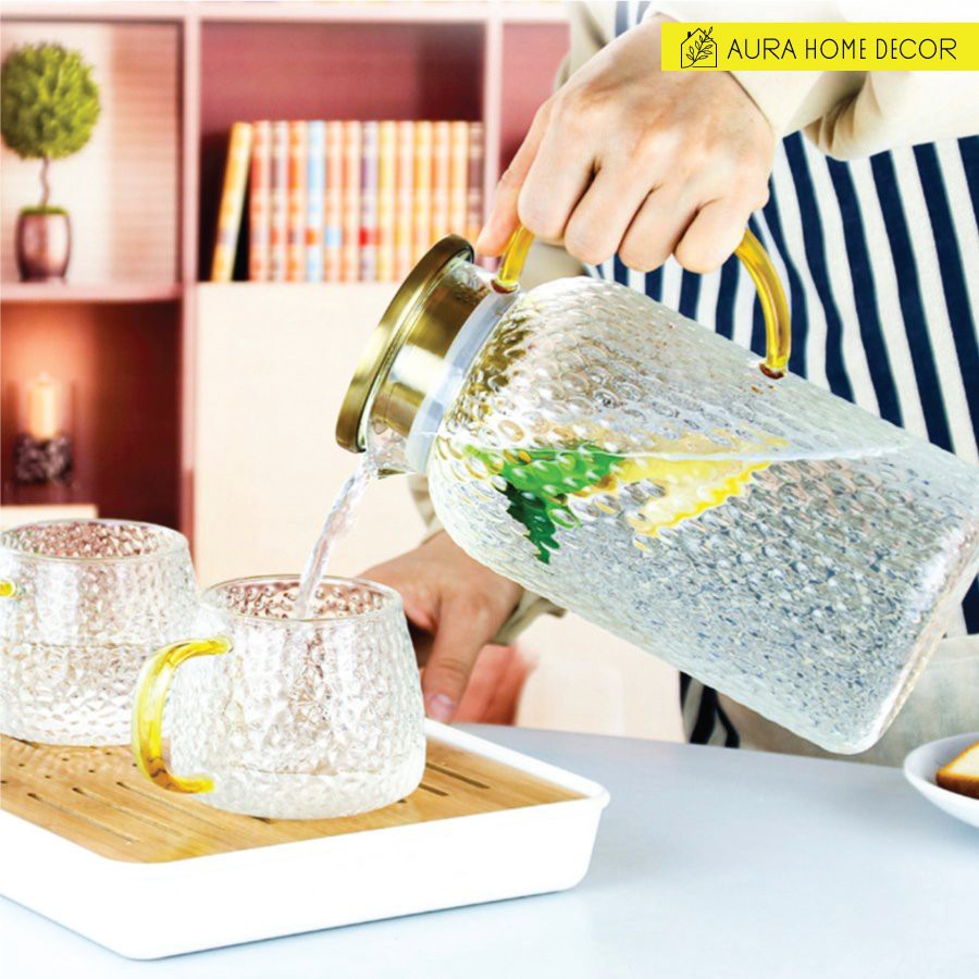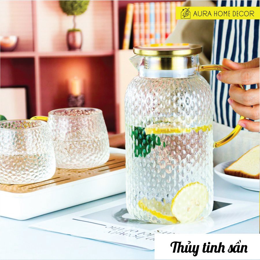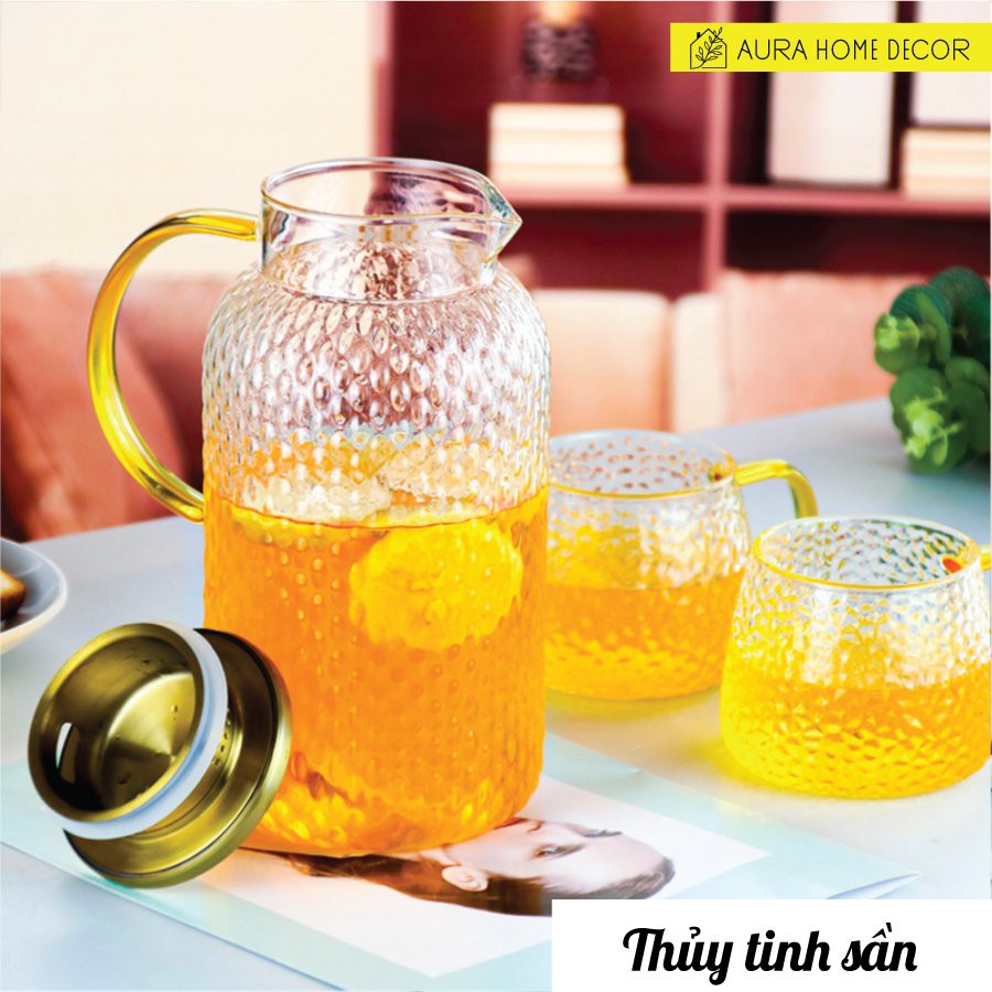 Post này #Aura xin giới thiệu bộ bình thuỷ tinh sần nắp inox304 mã số MS 11.52.5, cốc sần quai vàng cực hot. Dù là nước lọc, nước detox, trà thảo mộc hay ly nước hoa quả uống bằng cốc này cũng ngon hơn, đẹp hơn, tươi mát hơn ấy.Bình v