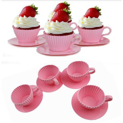 Nhà cửa & Đời sống > Dụng cụ nhà bếp > Dụng cụ nướng & trang trí bánh || 1 bộ 4 khuôn cốc cupcake silicon và đĩa nhựa dùng để nướng và trưng bày bánhCòn hàng