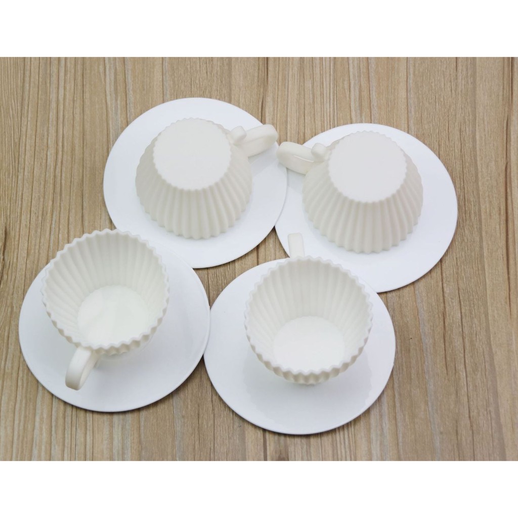 1 bộ 4 khuôn cốc cupcake silicon và đĩa nhựa dùng để nướng và trưng bày bánh