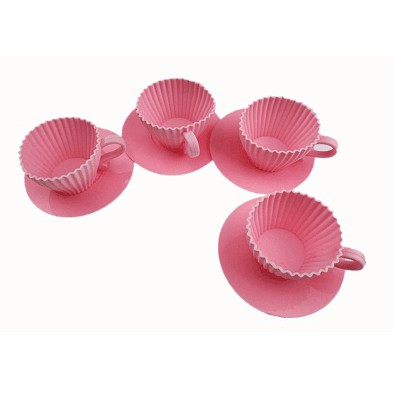 Sản phẩm gồm 1 bộ 4 cốc cupcake silicon và 4 đĩa nhựa dùng để nướng và trưng bày bánhCốc cupcake silicon có thể chịu nhiệt đến 230 độ C