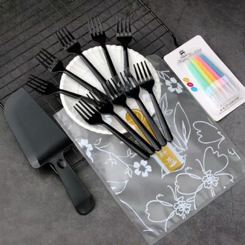 Nhà cửa & Đời sống > Dụng cụ nhà bếp > Dụng cụ nướng & trang trí bánh || 1 bộ dao dĩa nĩa đĩa giấy nến sinh nhật có 10 đĩa 10 dĩa và dao nếnCòn hàng