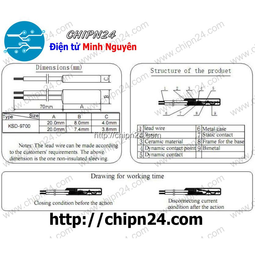 Cầu Chì Nhiệt KSD9700 30 Độ Thường Mở 5A 250VACTính năng