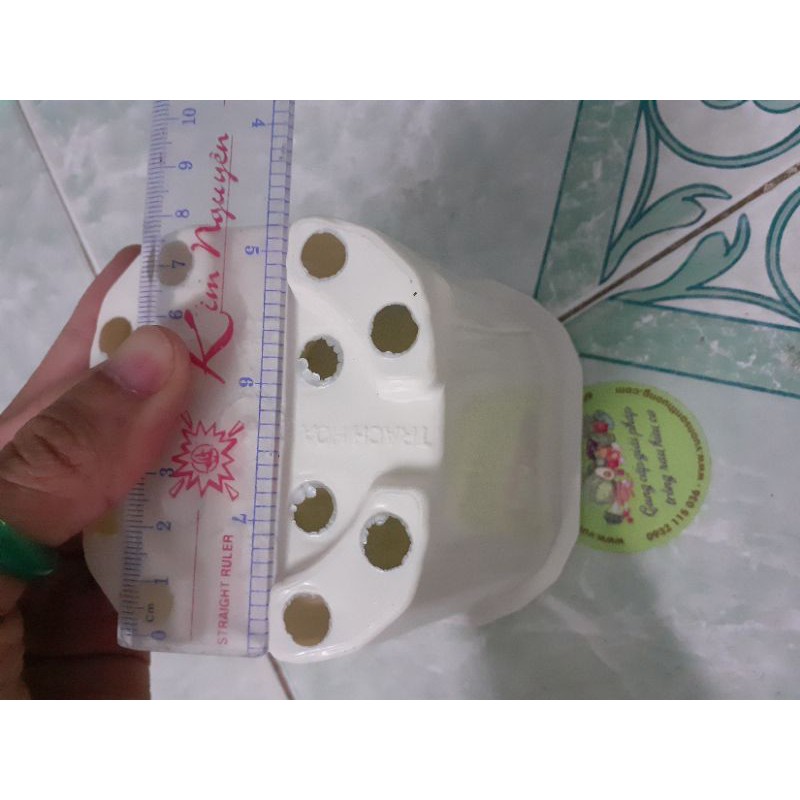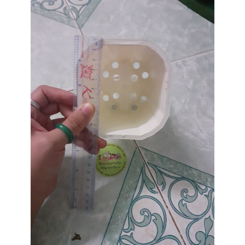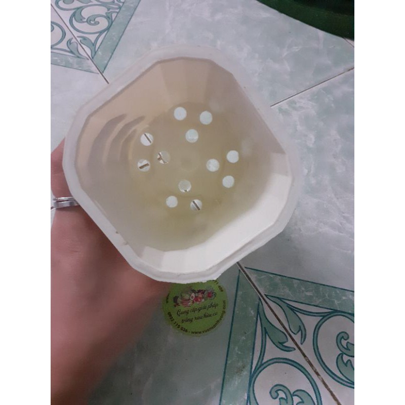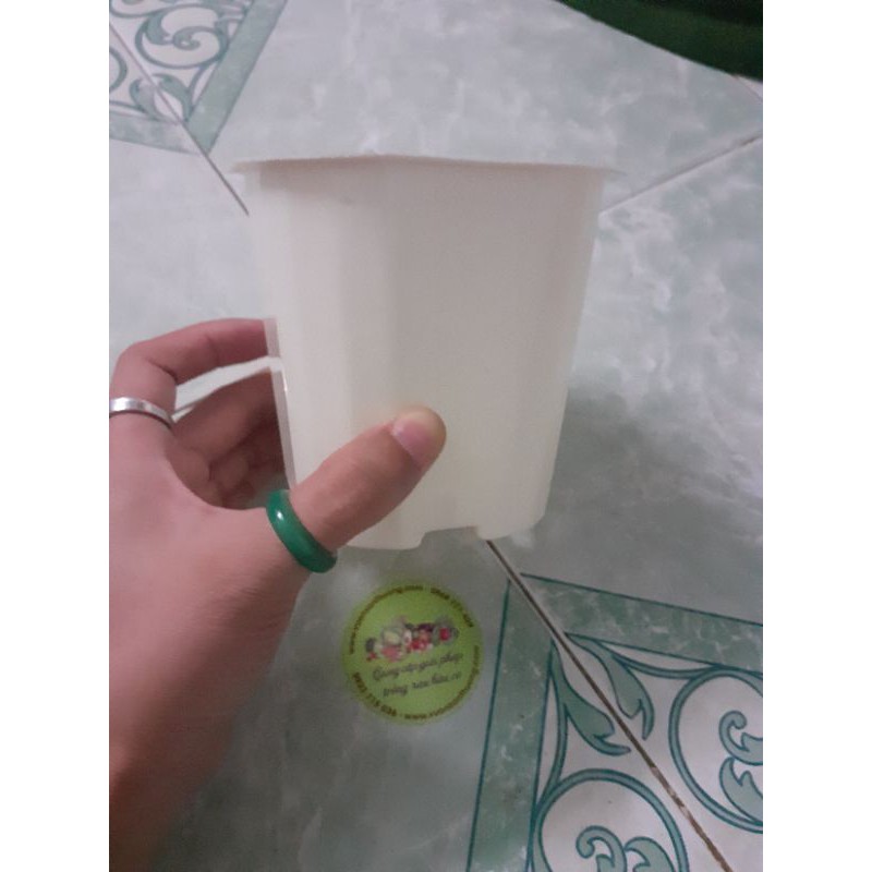 Chậu nhựa vuông trắng cao 11x10x9 mm.Nhẹ, dày dặn, cứng cáp và bền.