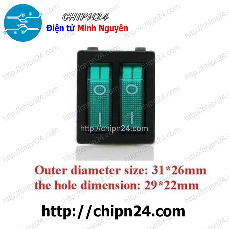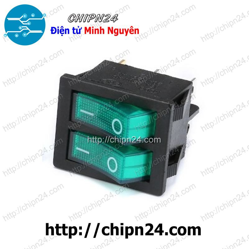 [1 CÁI] Công tắc bập bênh Có Đèn KCD3 6 chân XANH LÁ