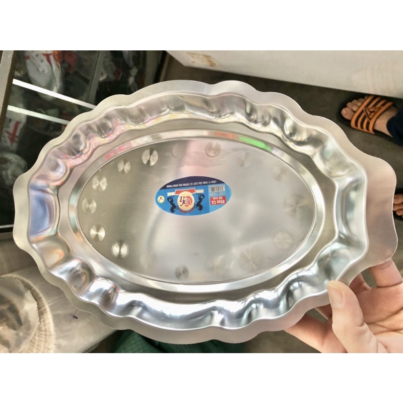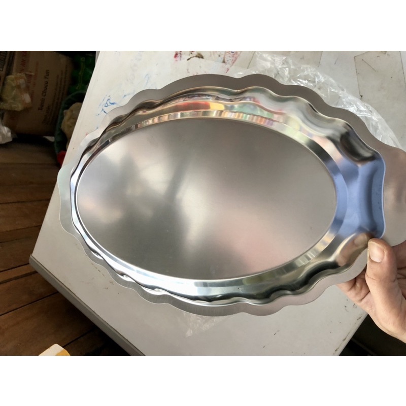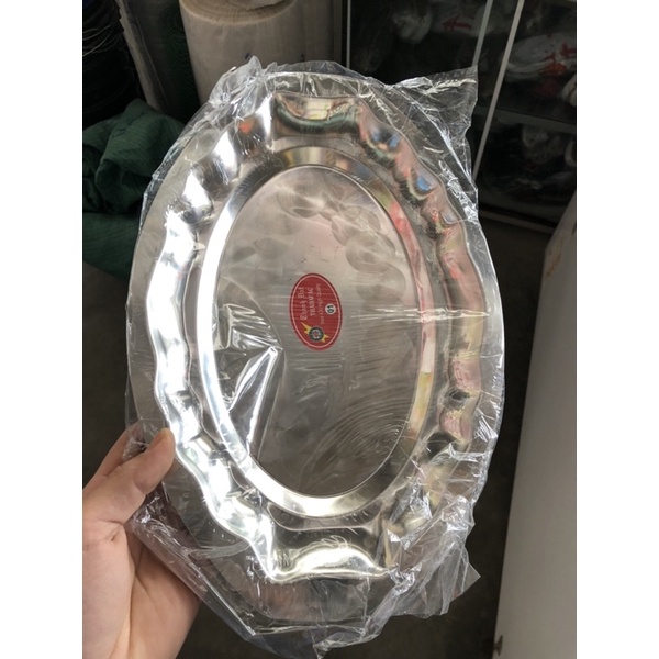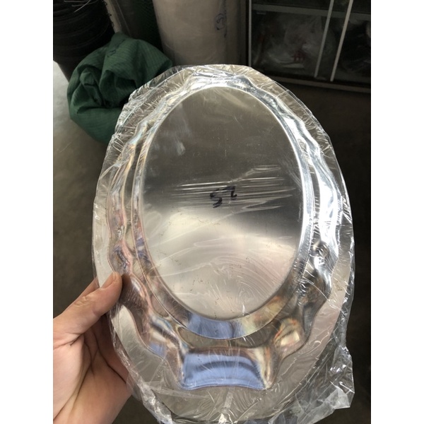 Dĩa ( đĩa ) hột xoài bằng inox thích hợp ăn các món bò né, đồ xào, cari v.v....Chất liệu inox tốt. Kích thước 23 x 35cm