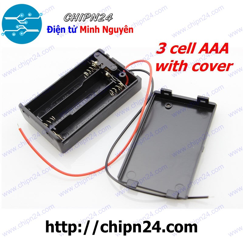 Giới thiệu [1 CÁI] Hộp Đế pin 3 viên AAA (có nắp, có công tắc)