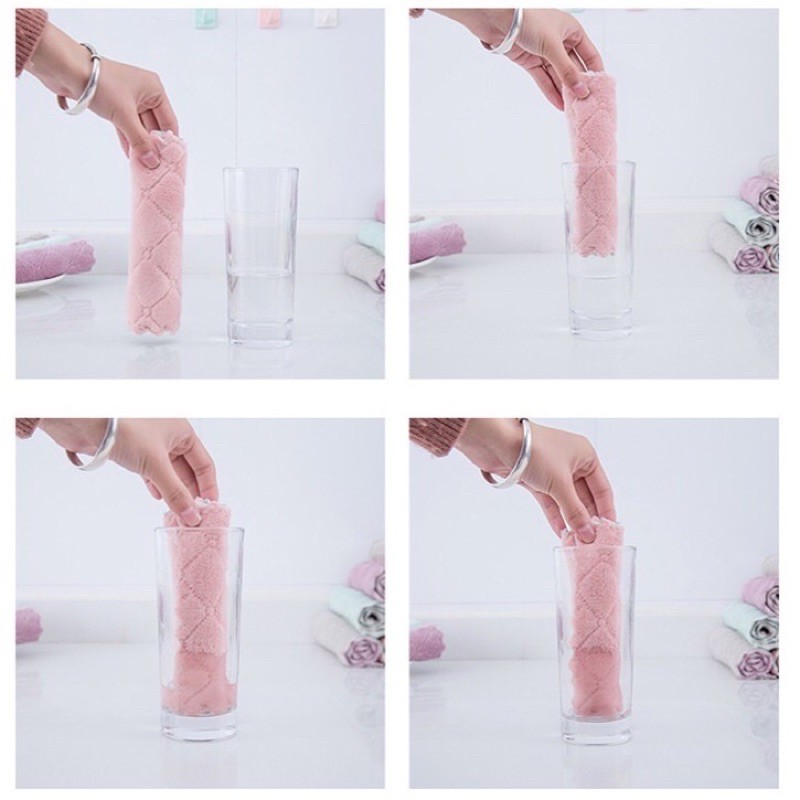 - Khăn lau tay 2 mặt siêu thấm với chất liệu lông mềm mại và khả năng thấm hút tốt, dễ dàng lau sạch chén bát cũng như vệ sinh nhà cửa.- Kích thước: 24 x 15cm.