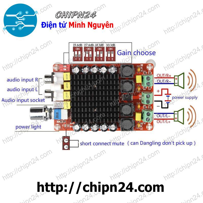 Mạch TDA7498 khuếch đại âm thanh stereo 100W*2 sử dụng chip khuếch đại class D TDA7498 cho công suất ngõ ra 2 kênh mạnh mẽ, mỗi kênh 100W. Mạch được tích hợp chiết áp đôi dùng để điều chỉnh âm lượngThông tin kỹ thuật: