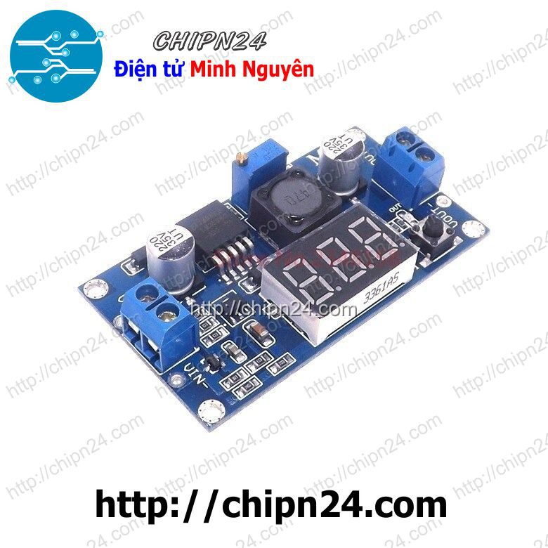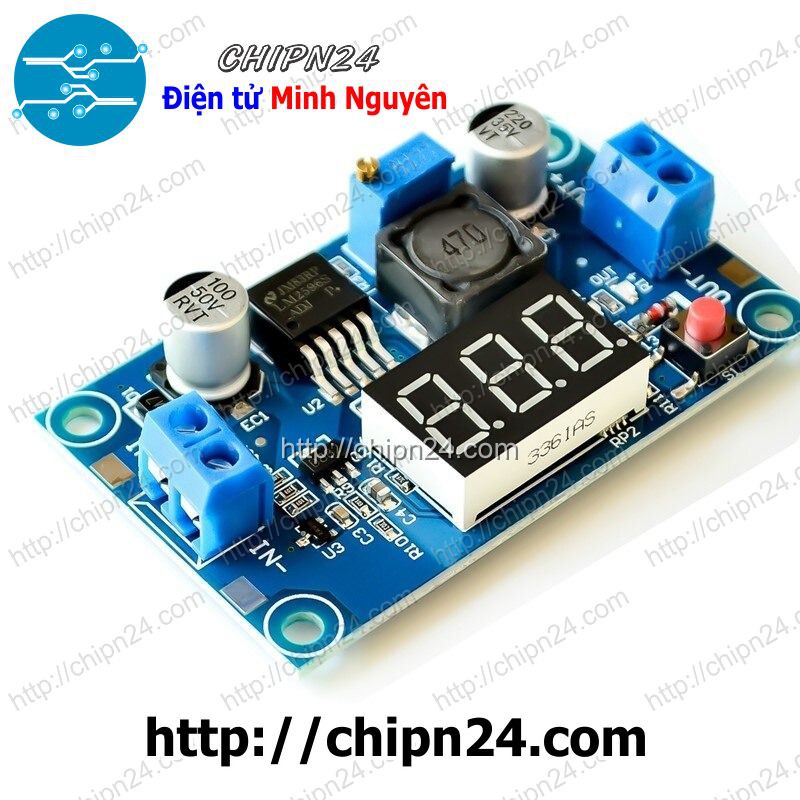 Mạch giảm áp DC LM2596 có hiển thị : với 3 led 7 đoạn hiển thị nguồn ngõ ra/vào tiện dụng cho quá trình sử dụng (hiển thị giá trị điện áp sai số trong khoảng +/-0,1V), mạch cho dòng điện ngõ ra lên đến 3A.Mạch còn có nút nhấn để chuyển đỗi đo áp ngõ vào và ngõ ra.Thông số kỹ thuật: